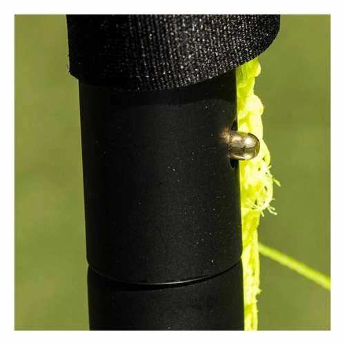 The steel goal is easy to set up, precision locking pins secure the poles together and galvanized ground stakes that keep the goal attached firmly to the ground.