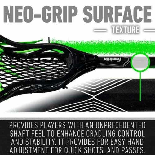 NEO-GRIP SURFACE TEXTURE: The shaft is designed with our Neo-Grip surface texture for improved control and stability. Perfect for cradling and quick hand adjustments for lightning fast passes and shots